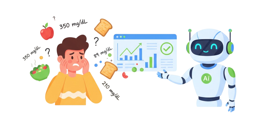 Glucobot brings everything you need into one place — personalized insights, smart meal guidance, and everyday support. It’s your friendly assistant for turning diabetes from overwhelming to manageable, so you can focus on living your life.